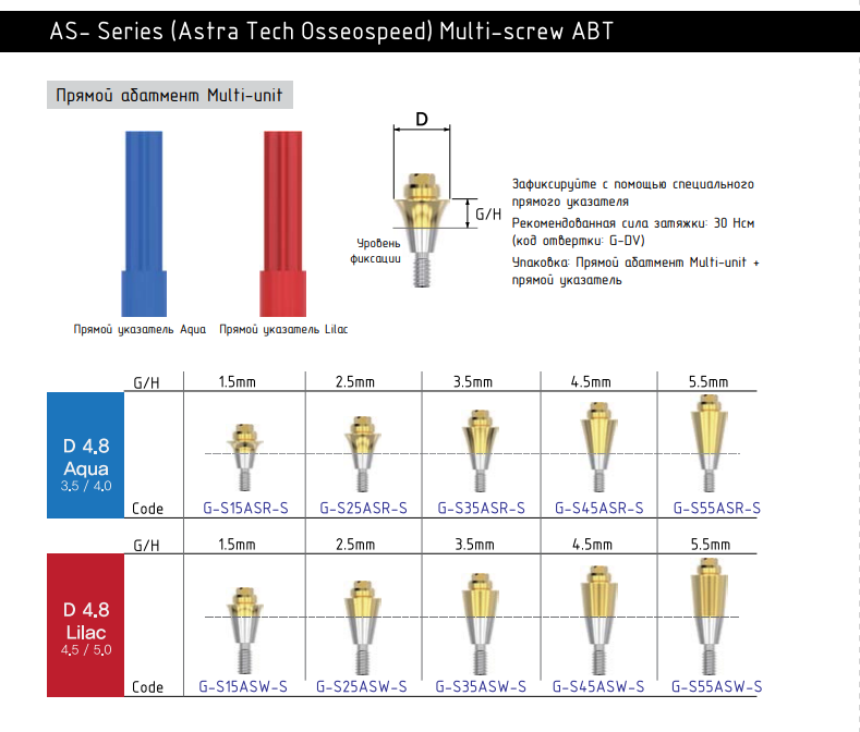 | Multi-Screw Прямой абатмент Astra 4.5/5.0 G-S55 ASW |