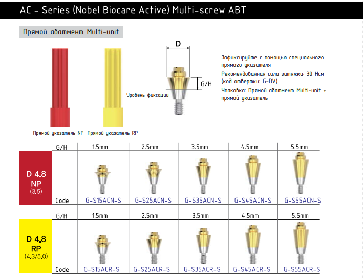 | Multi-Screw Прямой абатмент Nobel Active 4.3/5.0 G-S 55 ACR |
